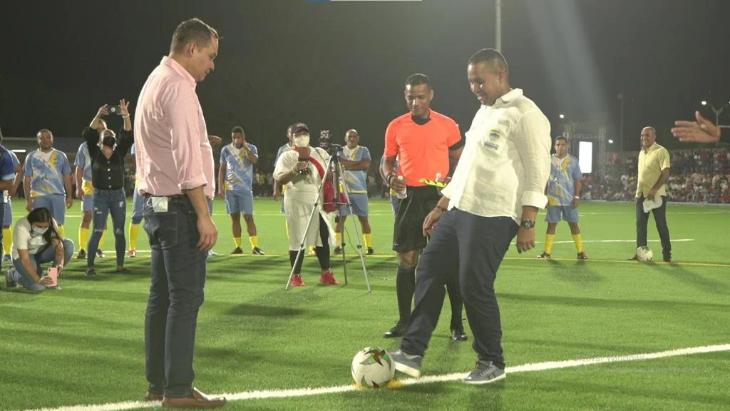 Con un saque oficial, el alcalde José Ramiro Bermúdez Cotes, reaperturó las canchas de este escenario deportivo y dio inicio al partido de las estrellas del pasado, presente y futuro del Distrito de Riohacha.